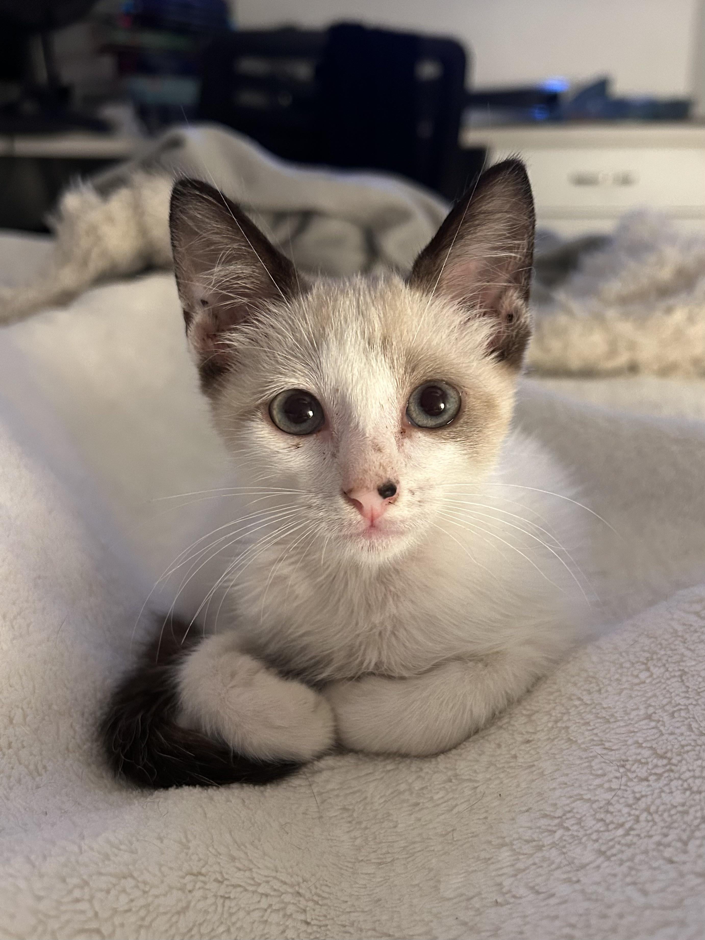 Found him shivering outside in the cold. He is finally safe and warm now.