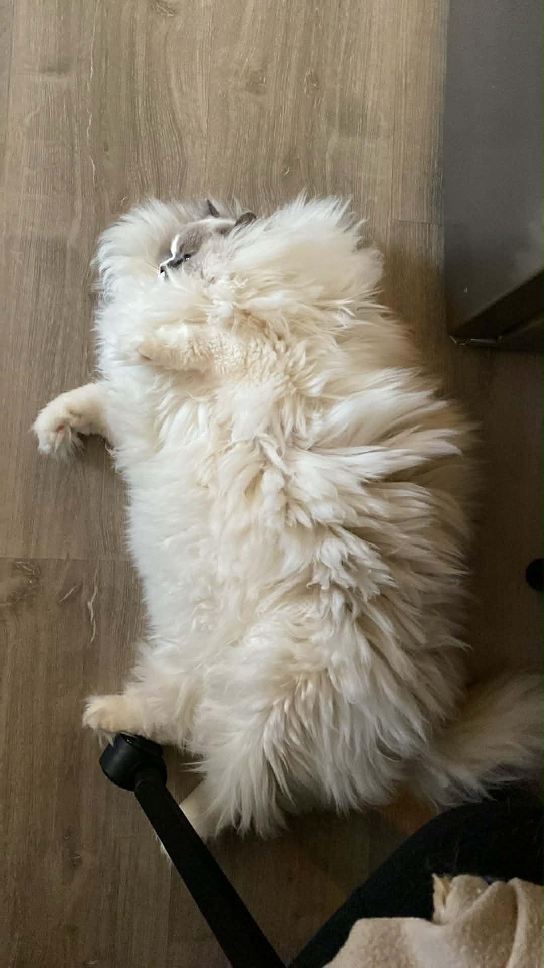 My dog sleeps like he pays the bills and I’m the guest.