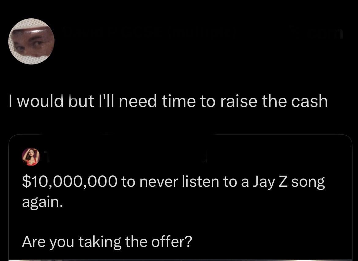 $10m to never hear Jay Z music again?