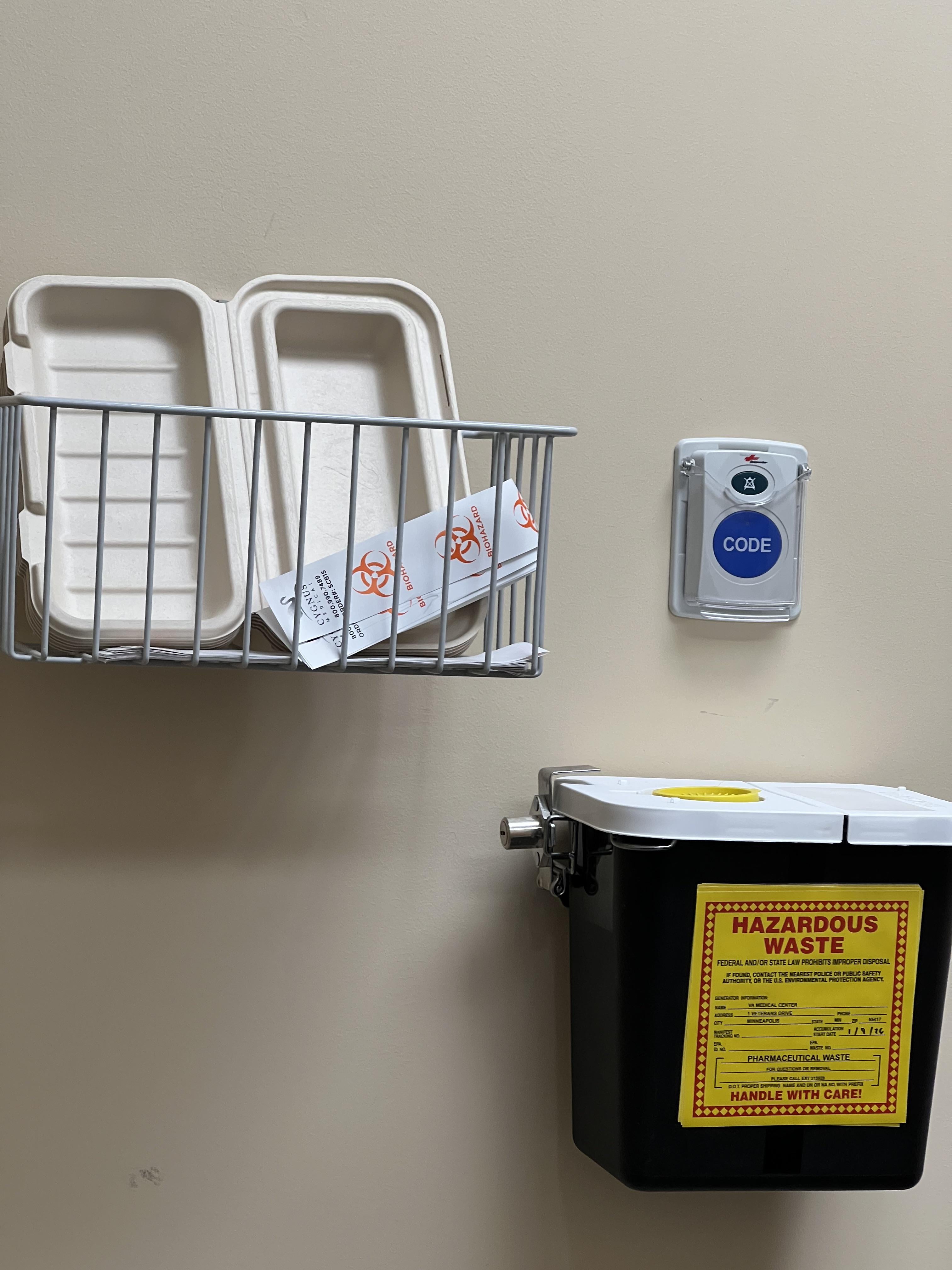 Ummm, why does this hospital have take-away containers next to the hazardous waste bin?