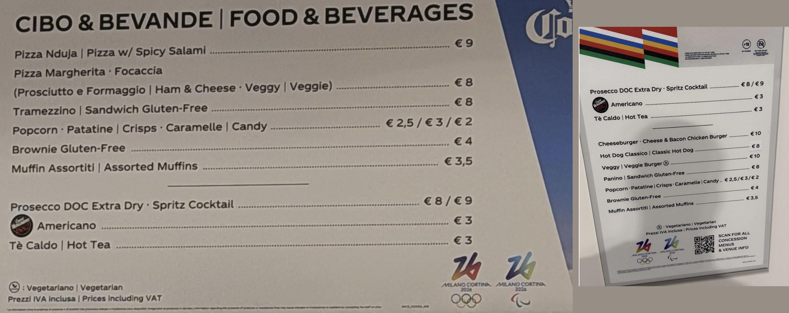 Food prices at the 2026 Winter Olympic games