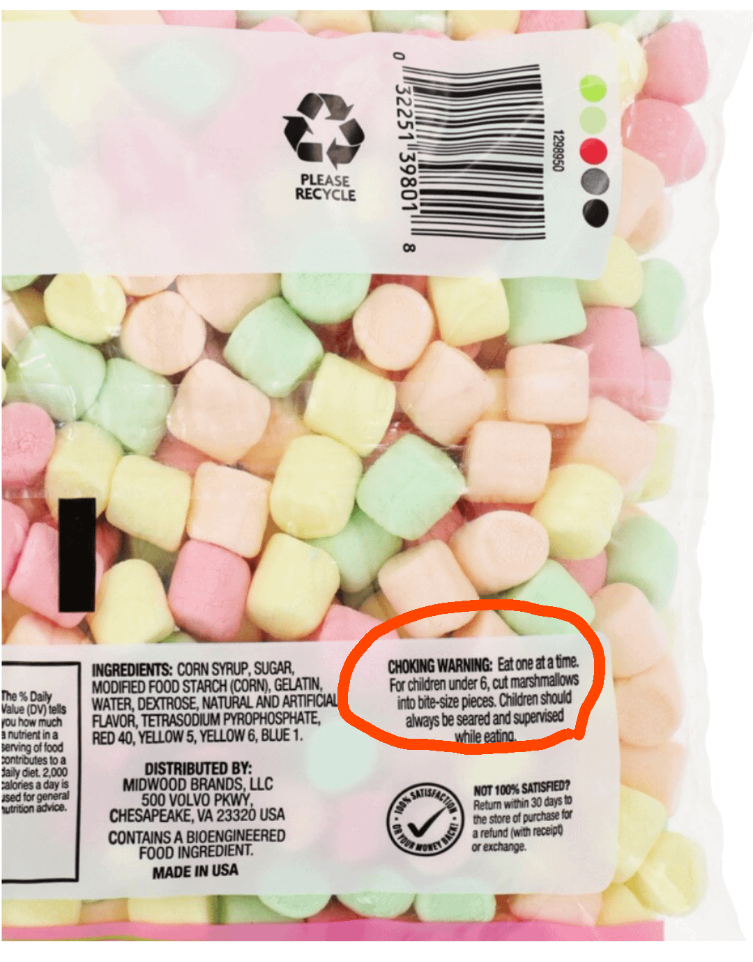 Marshmallows odd warning label