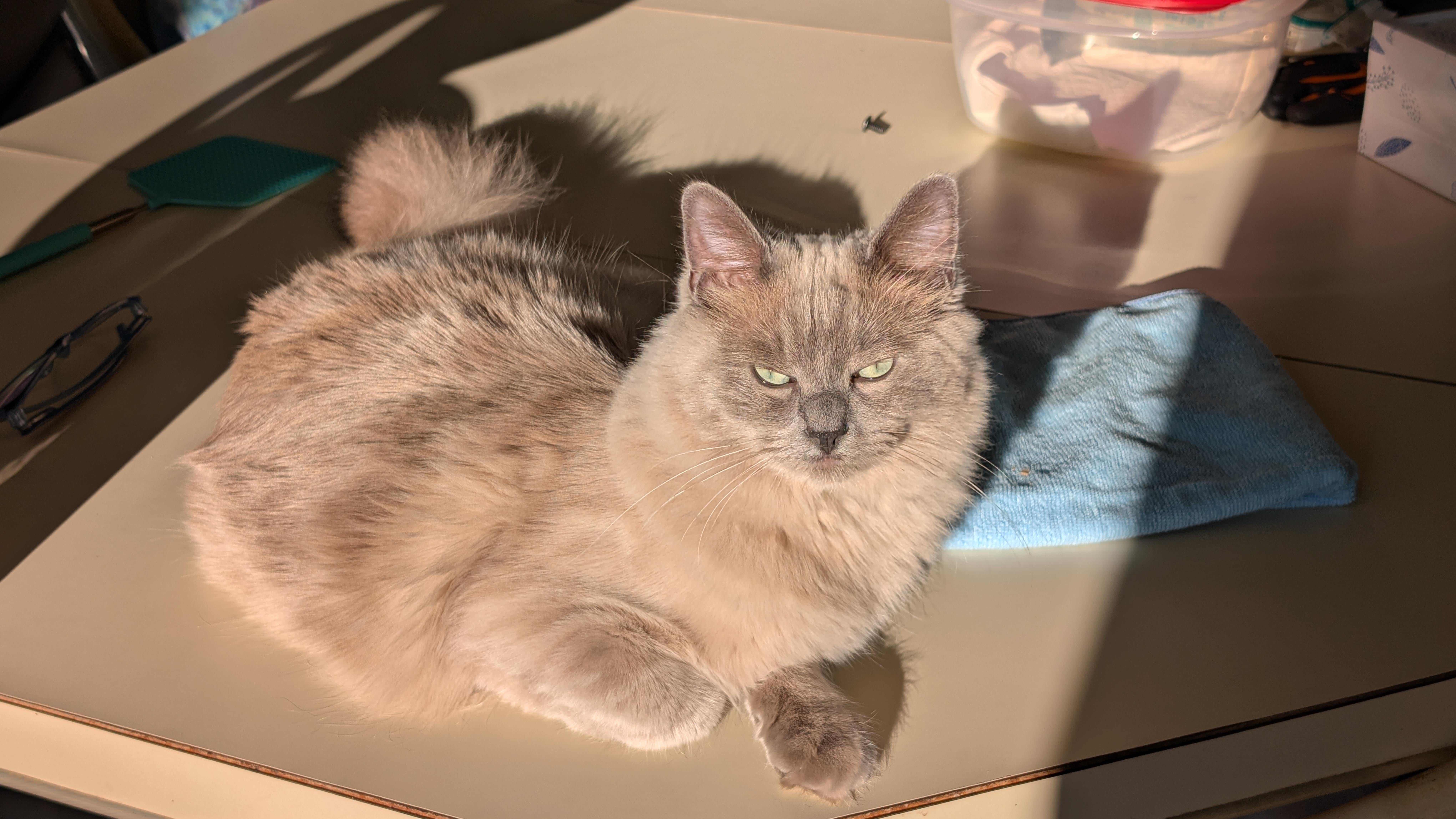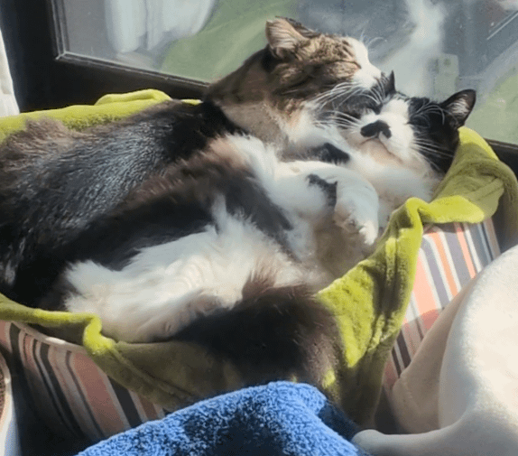 Sunlight, cuddles… and one overly enthusiastic groomer.
