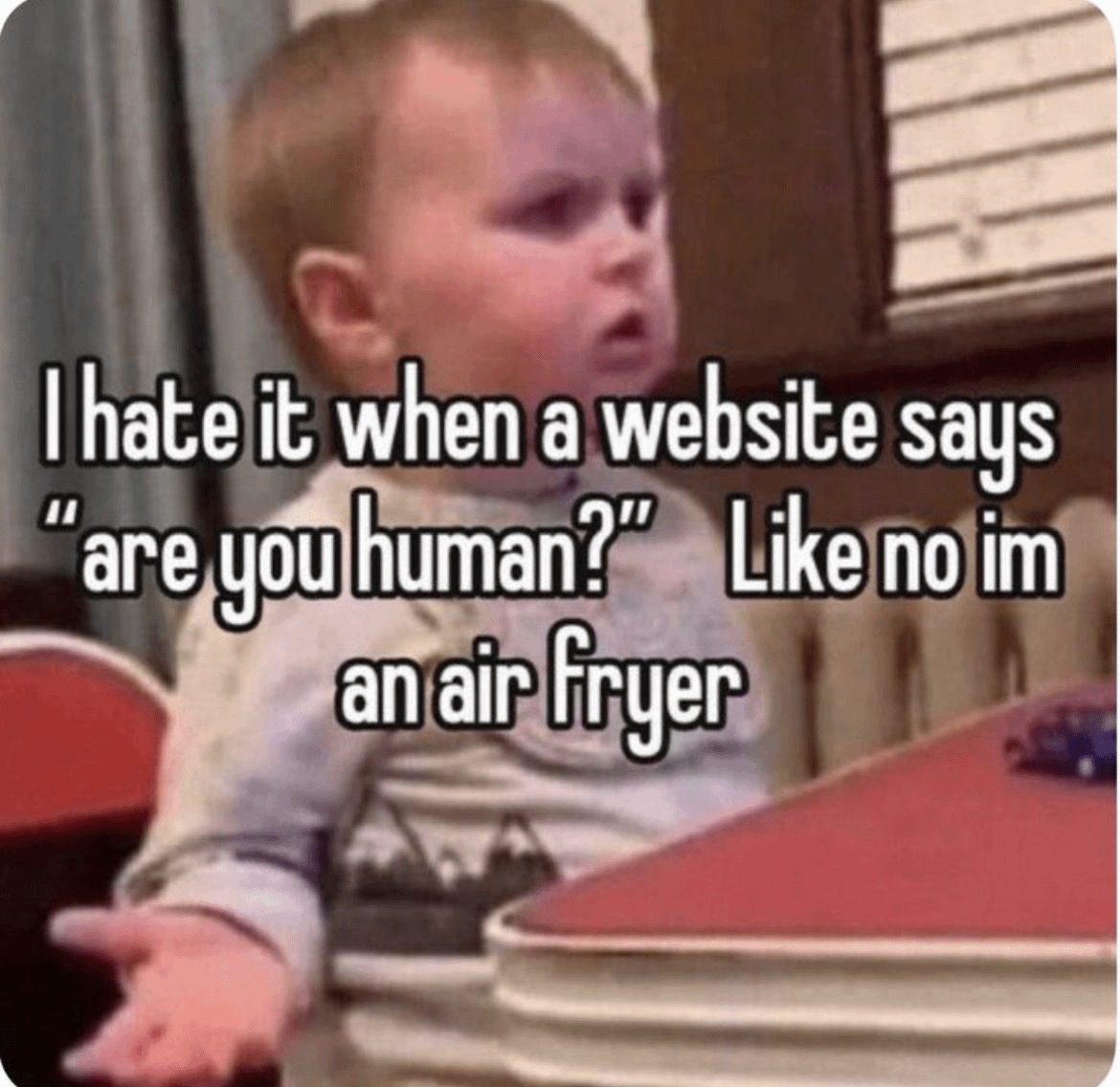 Websites asking if I’m human like I didn’t just click 12 traffic lights.