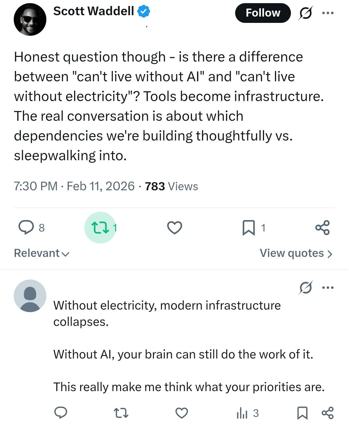Living without AI =/= Living without electricity