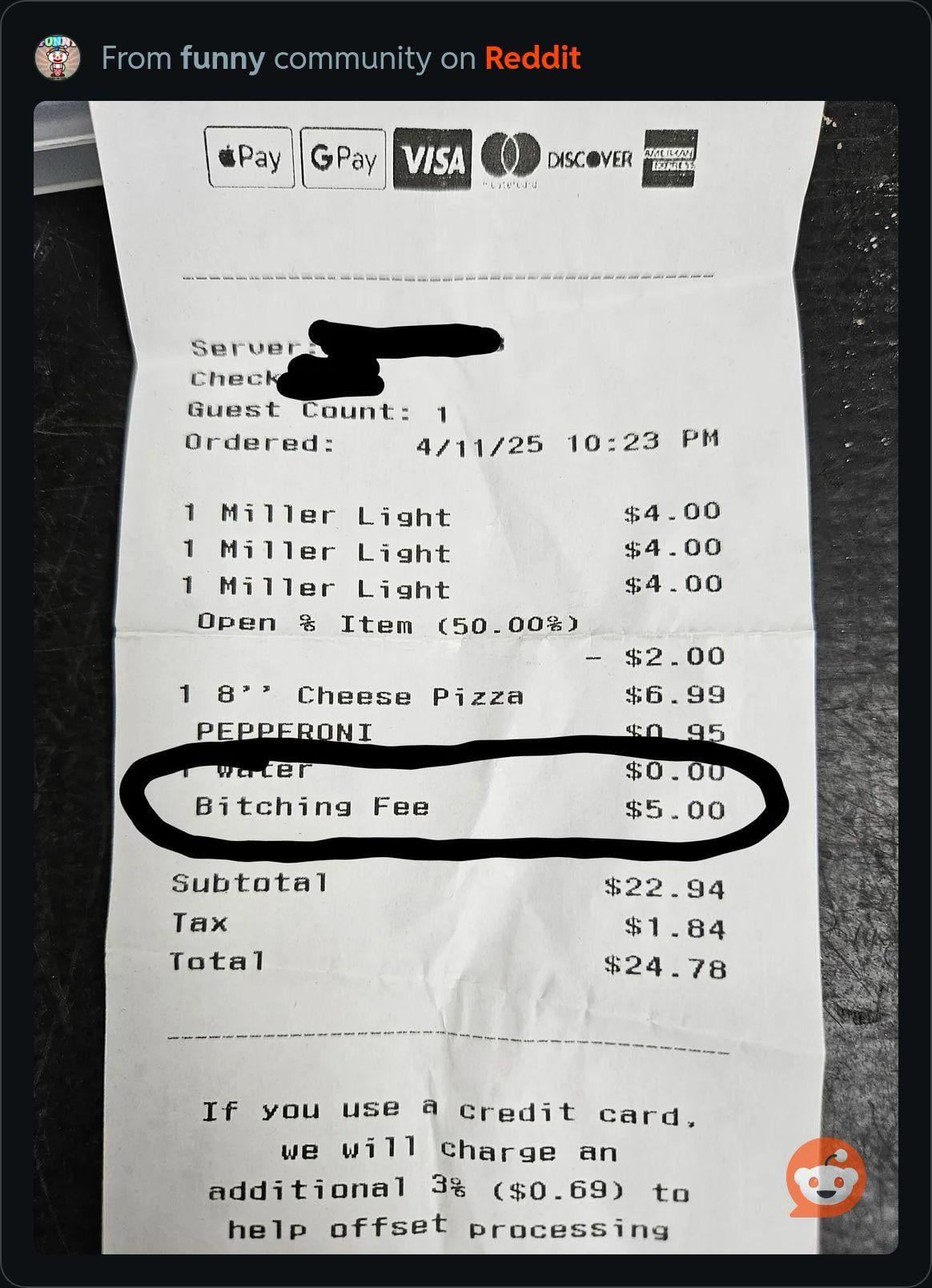 so supposedly i was charged a “bitchi*ng” fee?