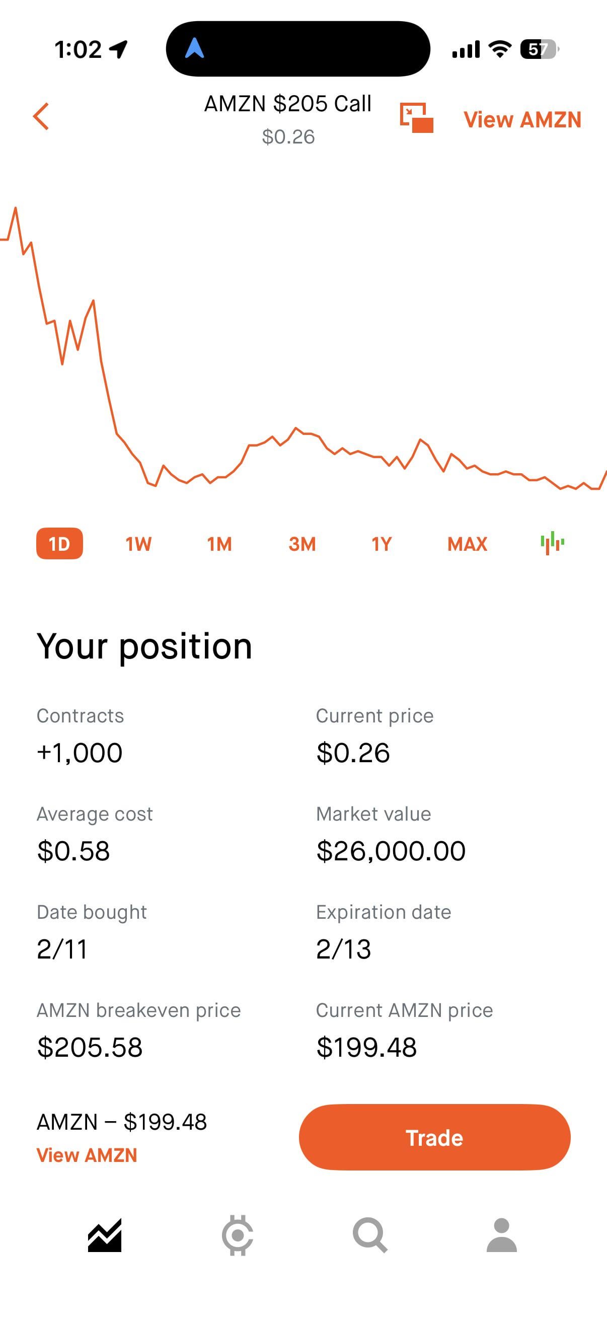 If AMZN goes up 8% tomorrow this will be worth $1 million. If not, I’m cooked