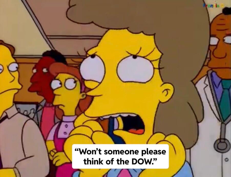 “Won't somebody please think of the DOW!” - Pamela Jo Bondi.