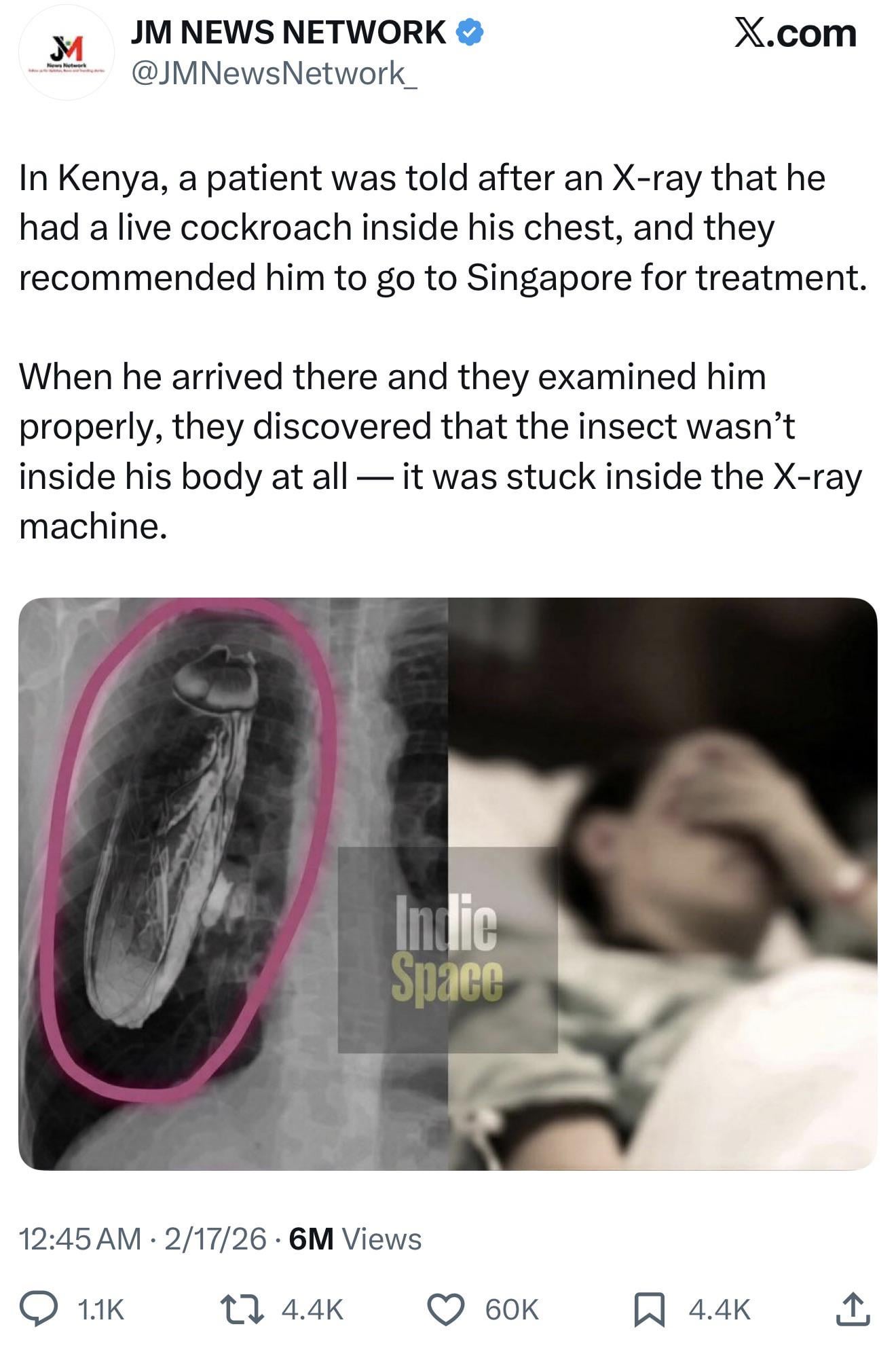 Doc: "Sir, you have a cockroach in your chest." Cockroach: "Actually, I’m just chilling on the lens