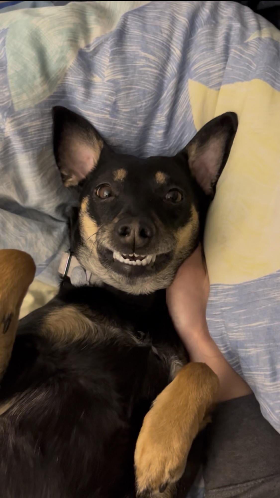 Our silly girl is always happy to wake up with us