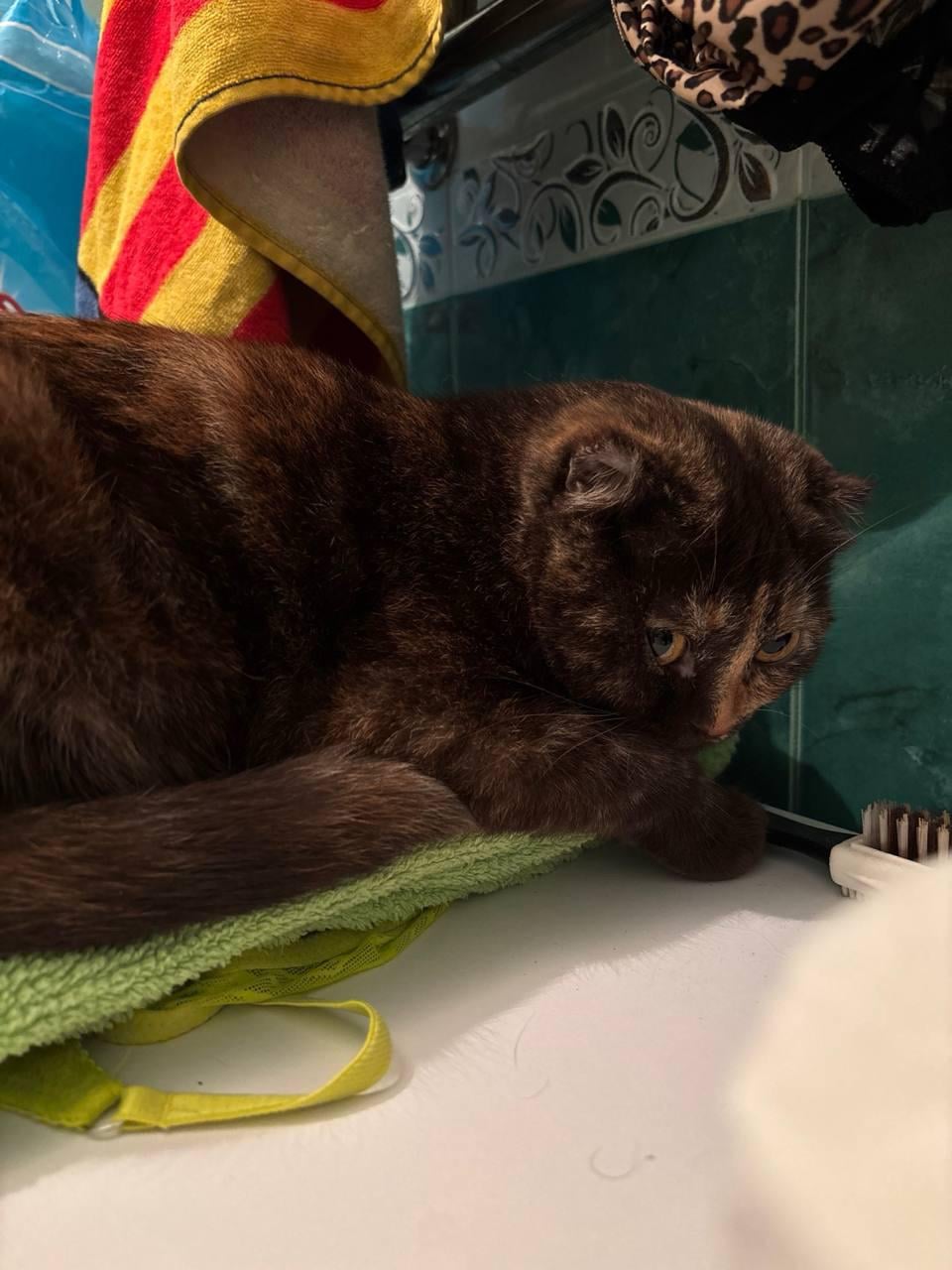 She just loves lying here and won't give me the towel. Lol 😂