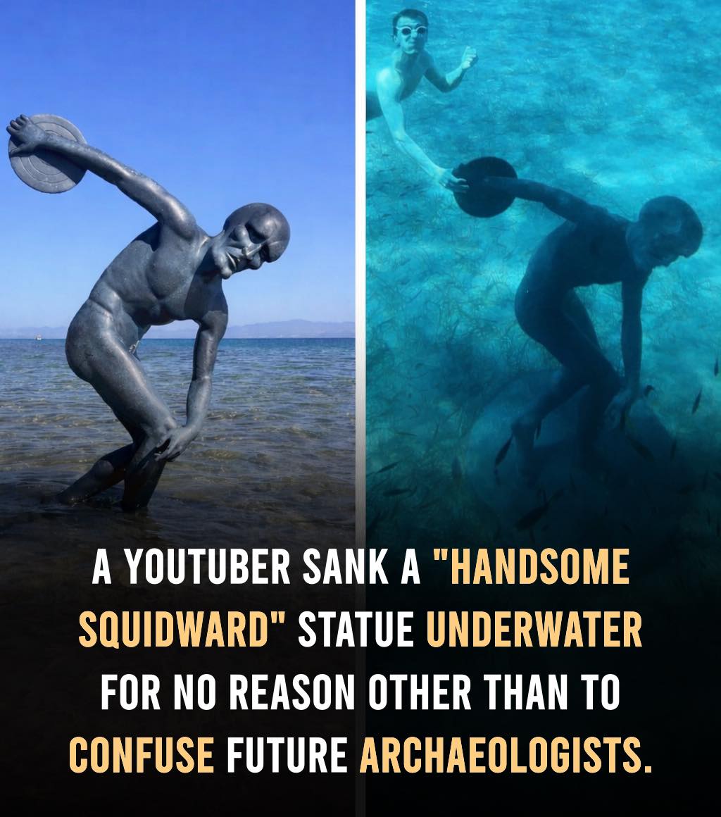He really woke up and chose chaos Seattle meme artist Sunday Nobody spent $25,000 to sink a 3-meter bronze Squidward statue 30 feet deep in the Mediterranean — just to confuse archaeologists 1,000 years from now. It even landed upright. Future historians… good luck.