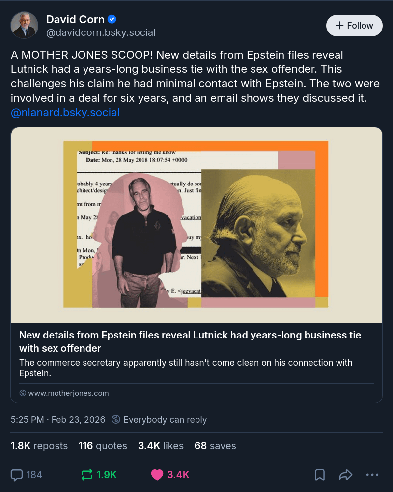 Validating the "epstein administration" nickname at every turn.