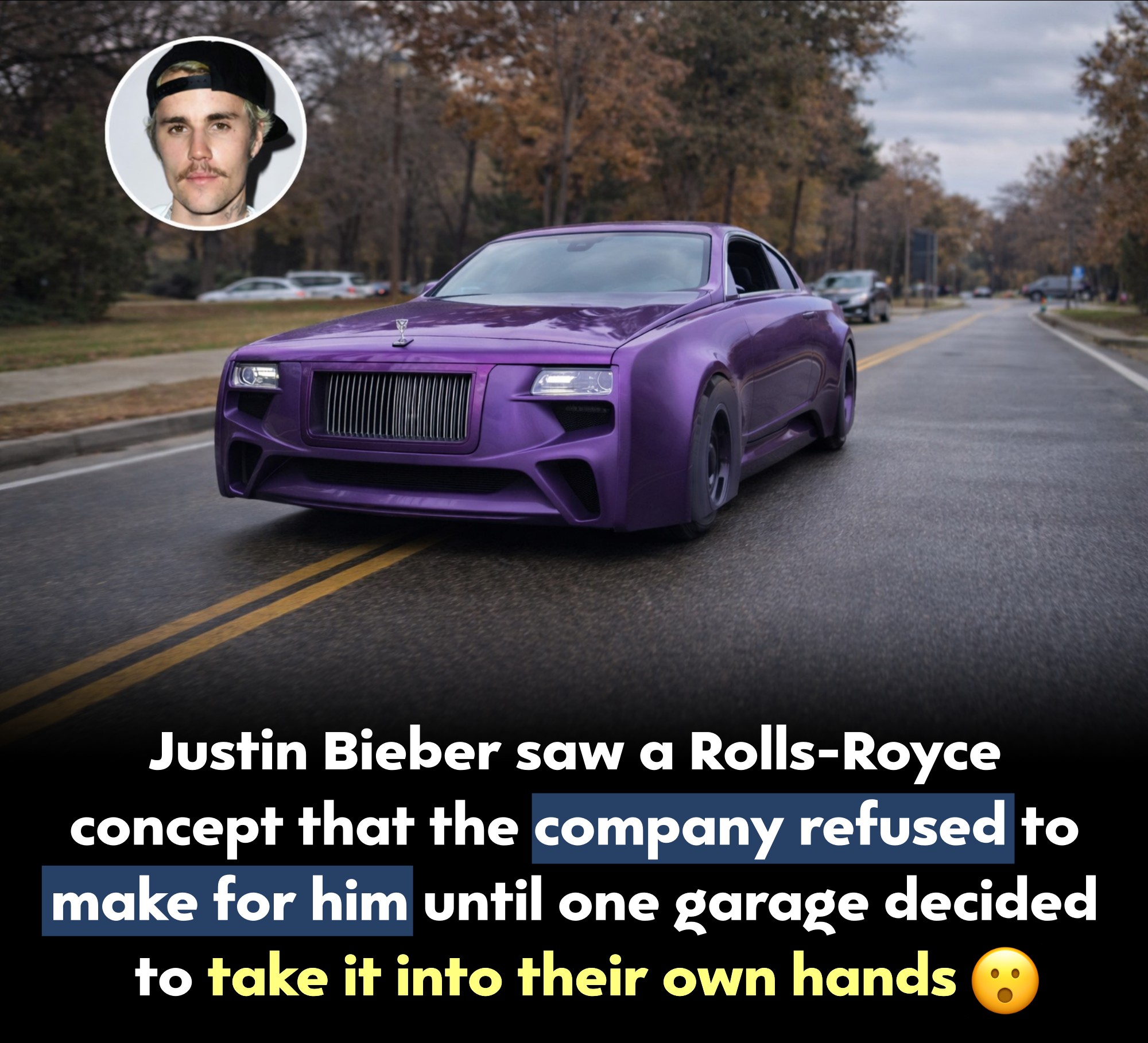 When Justin Bieber spotted a futuristic Rolls-Royce concept he absolutely loved, he knew he had to have it The only problem? It was never meant to be built. The striking design was simply a concept study created to showcase imagination and innovation, not a road-ready vehicle. But in the mid-2010s, Bieber became so captivated by the car’s bold, next-level look that he wanted a real version for himself. Rolls-Royce declined to produce the one-off model, staying true to the fact that it was never engineered for production. That might have stopped most people — but not Bieber. Instead of giving up, he turned to the customization experts at West Coast Customs. The famous garage accepted the challenge and transformed the dream into reality, crafting a bespoke build inspired by the original concept. It’s proof that when luxury brands say no, creativity and determination can still find a way
