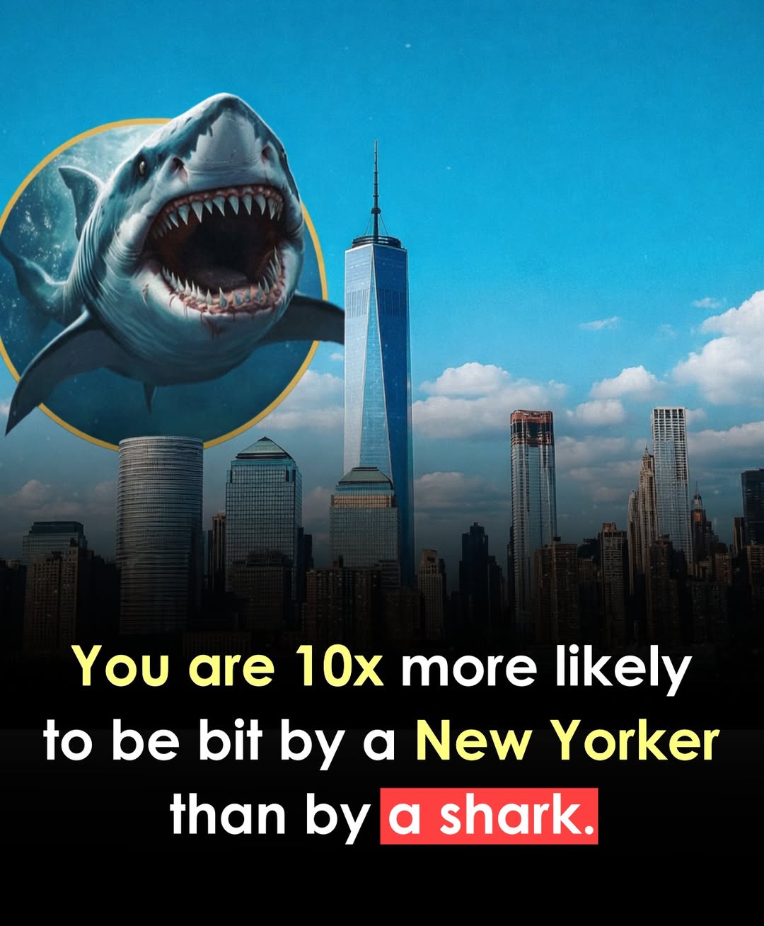 In New York City, the “people bite more than sharks” stat isn’t a myth — it reflects how rare shark bites actually are. Historical records show hundreds of human bite reports annually in past decades, while shark bites have been almost nonexistent