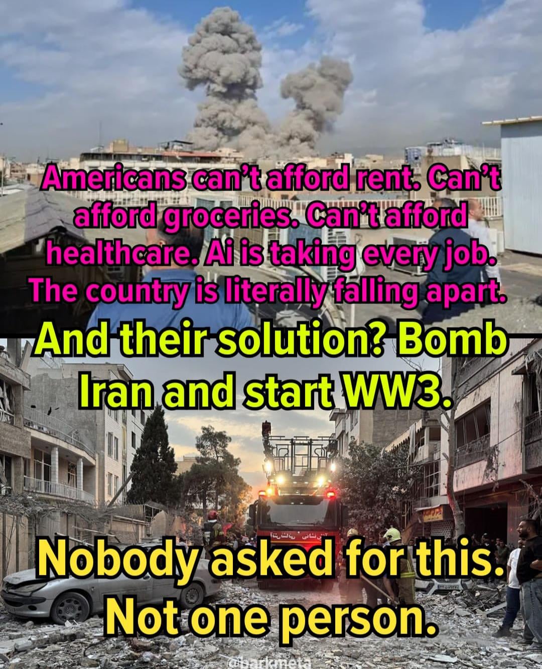We're struggling to survive.The U.S.: Best I can do is Iran