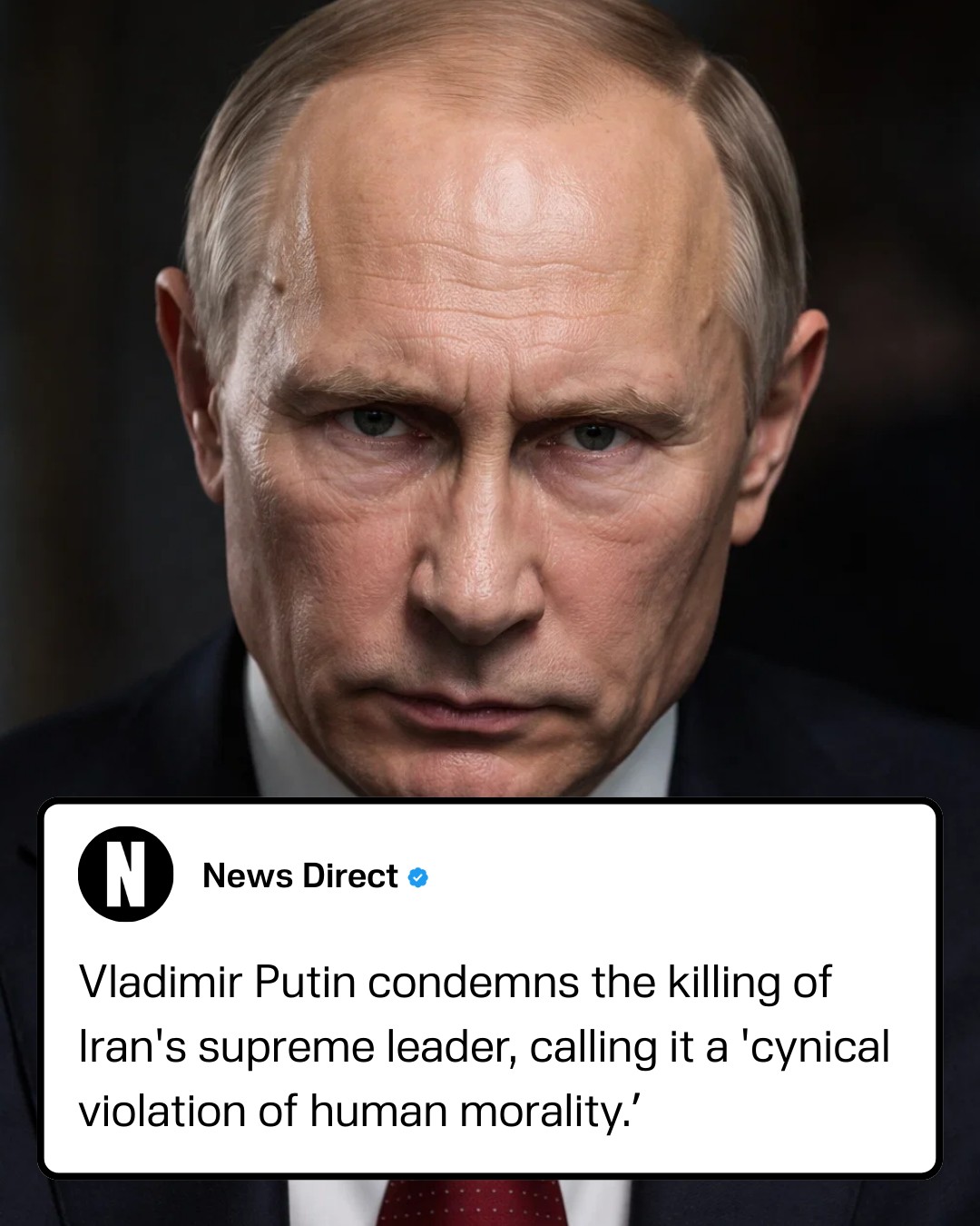 Russian President Vladimir Putin has condemned the killing of Iran’s Supreme Leader Ali Khamenei, calling it a “cynical violation of human morality and international law.” The statement was released by the Kremlin amid rising tensions in the region.