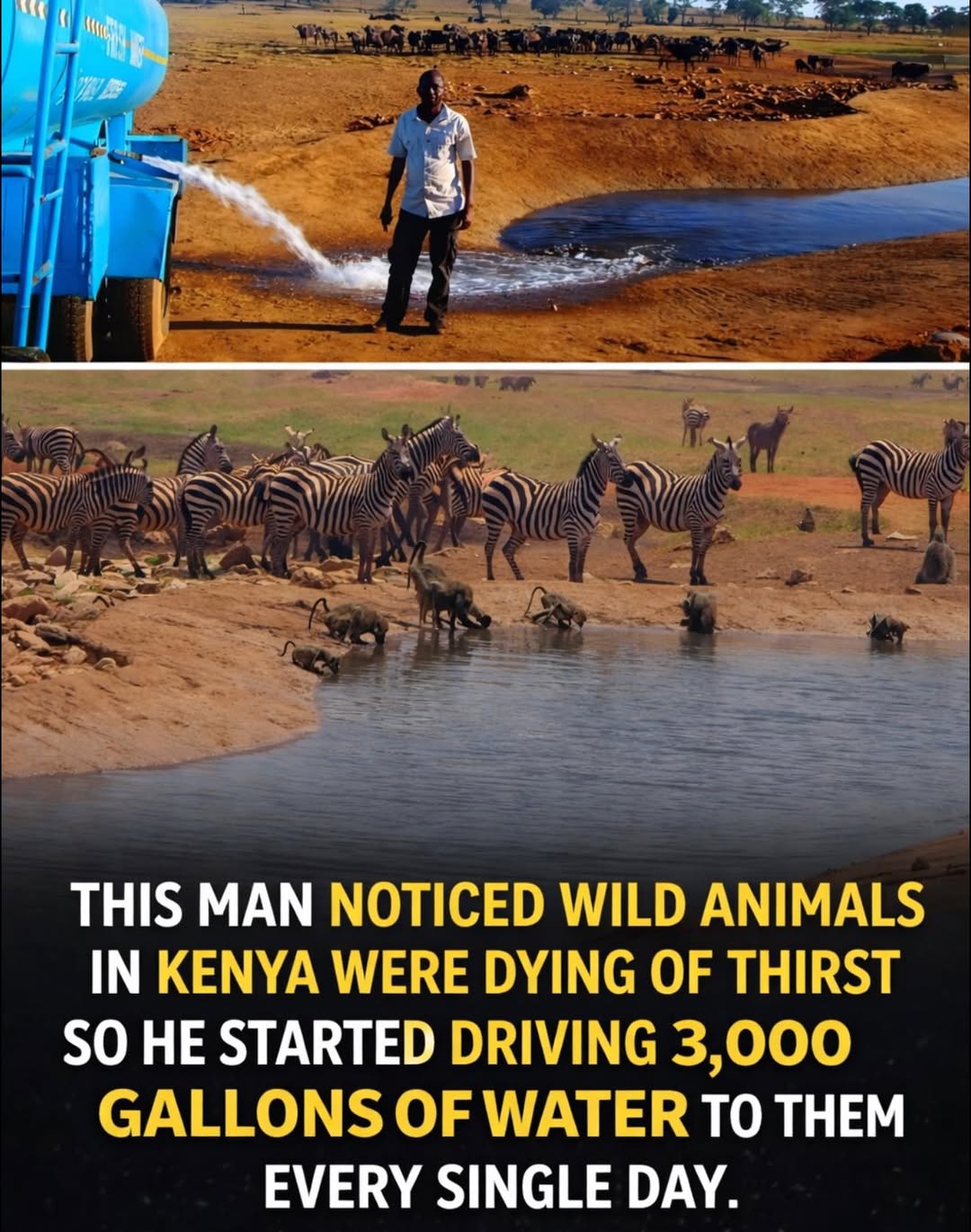 So he started driving 3,000 gallons of water to them. Every. Single. Day.