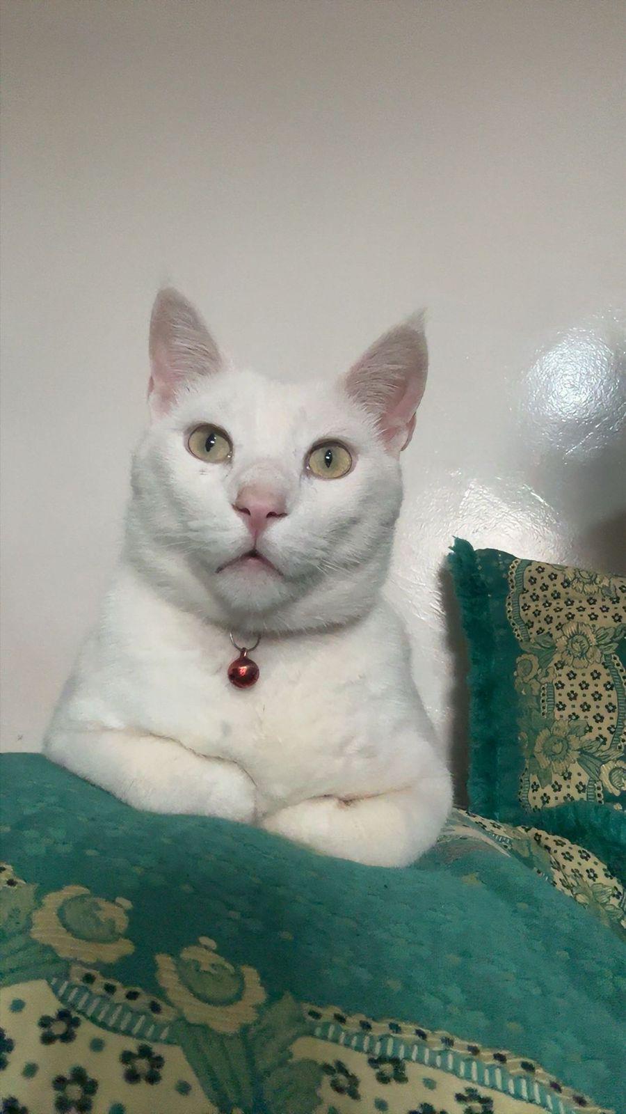 My beautiful white cloud poses in front of the camera.