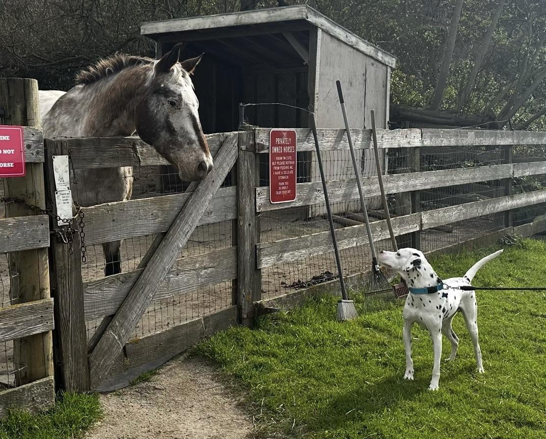 My Dalmatian thinks he discovered a very large dog