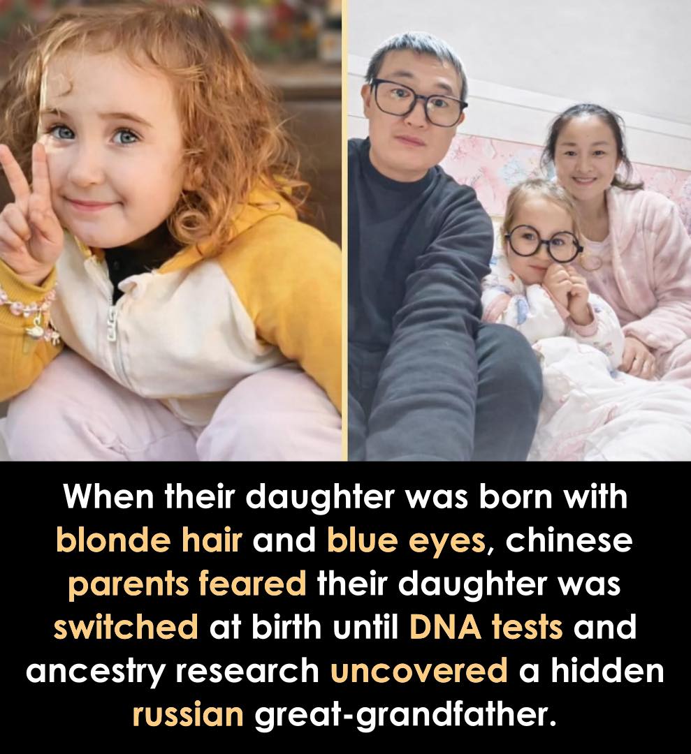 Her parents feared a hospital mix-up when their daughter’s eyes turned blue and her hair became light and curly. DNA tests confirmed she was theirs. The surprise came from ancestry — her great-grandfather was Russian, and the hidden genes appeared generations later.