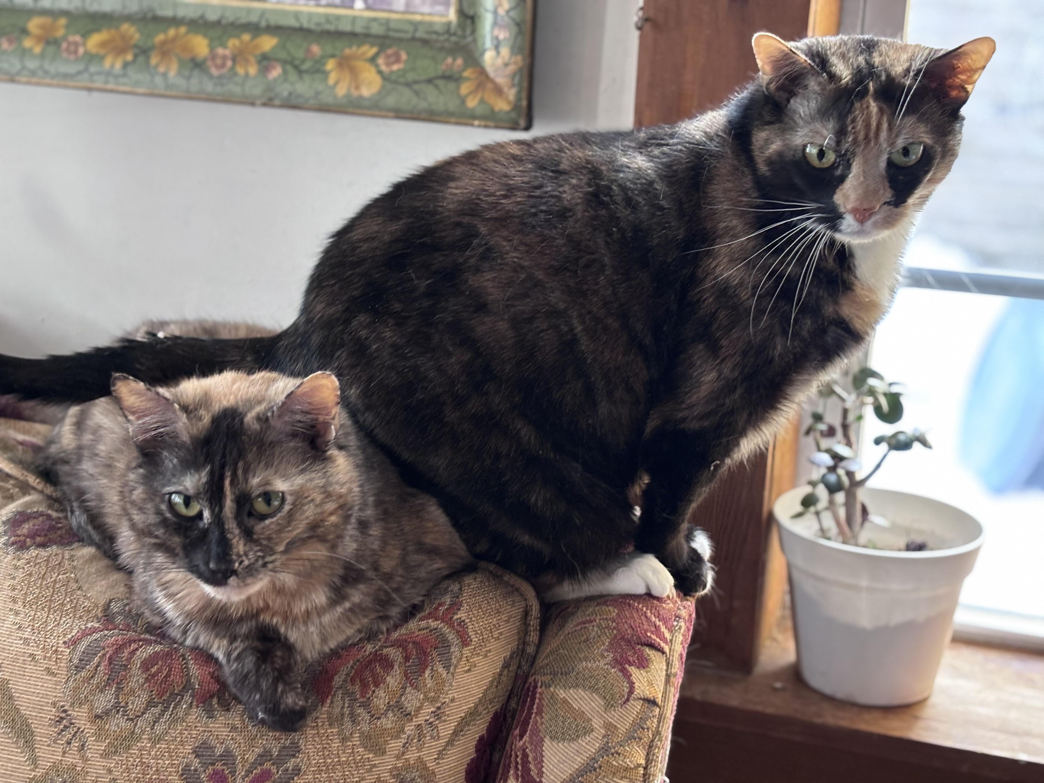 Peanut just casually sitting on her mom, Cricket