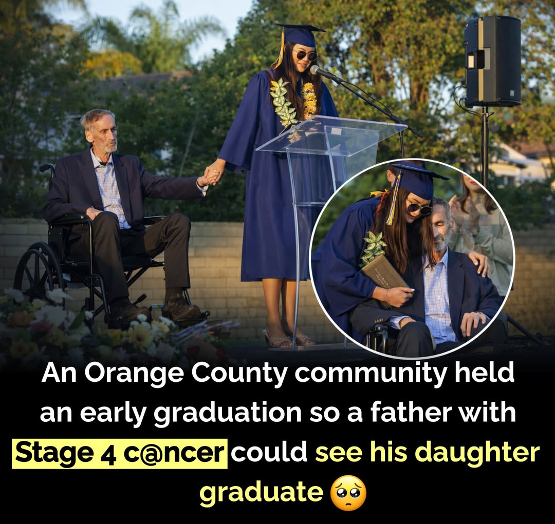 In March 2026, an emotional moment brought a community together in Huntington Beach, California High school student Abbi Kerwin was about to graduate , but her family was facing a heartbreaking reality—her father, Bill Kerwin, was battling Stage 4 pancreatic cancer, and his condition was rapidly worsening His biggest wish was simple: to see his daughter graduate. Knowing time was limited , friends, school staff, and the local community stepped in They organized a special early graduation ceremony just for Abbi The event was filled with emotion Classmates, teachers, and neighbors gathered to support the family as Abbi walked across the stage and received her diploma In a deeply touching moment, her father was there to witness it all —a milestone he feared he might never see. There were tears, smiles, and an overwhelming sense of love in the air This beautiful gesture showed the true power of community Even in the hardest times, people can come together to create unforgettable moments filled with strength, compassion, and hope