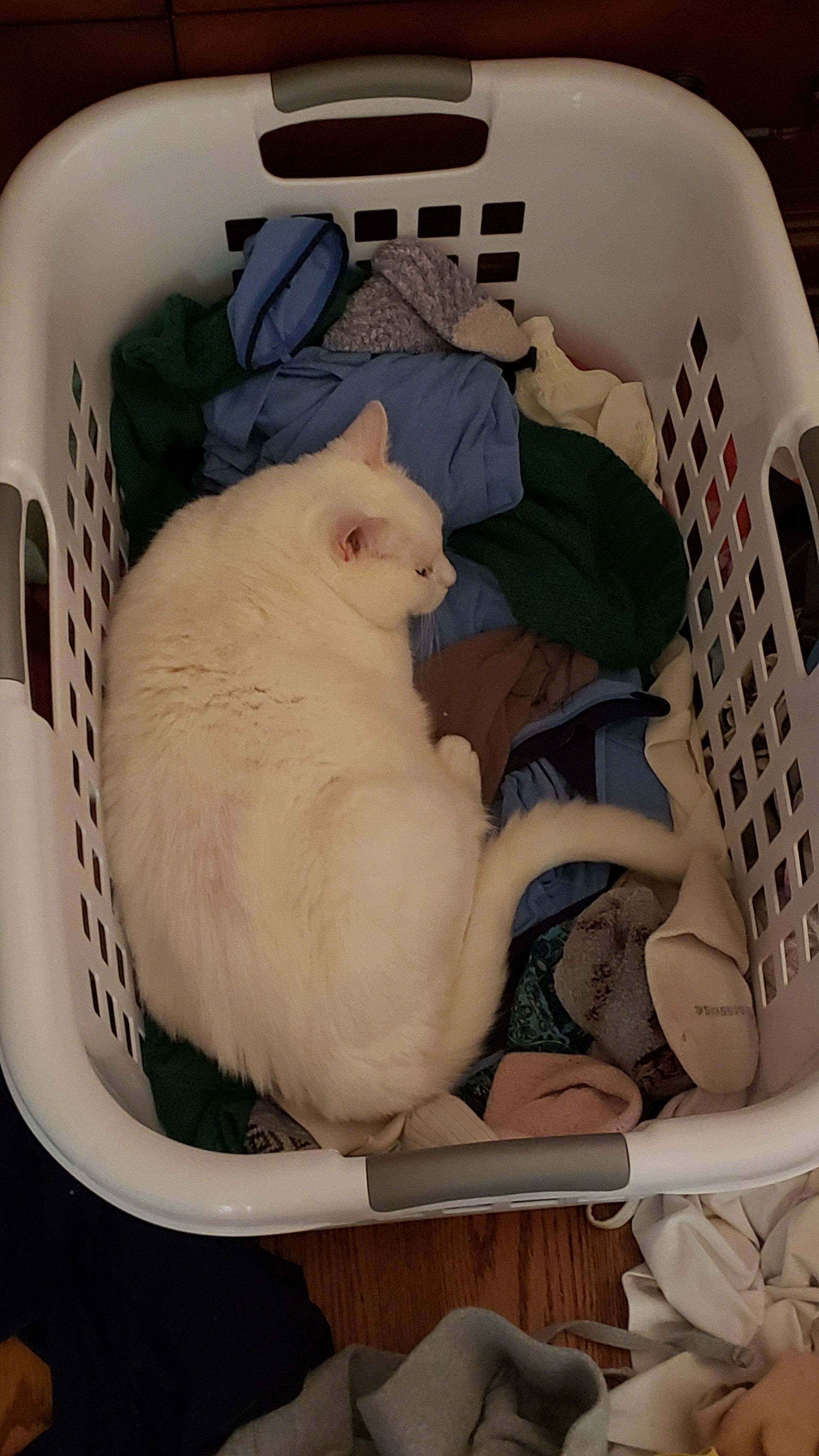 Cat in laundry basket