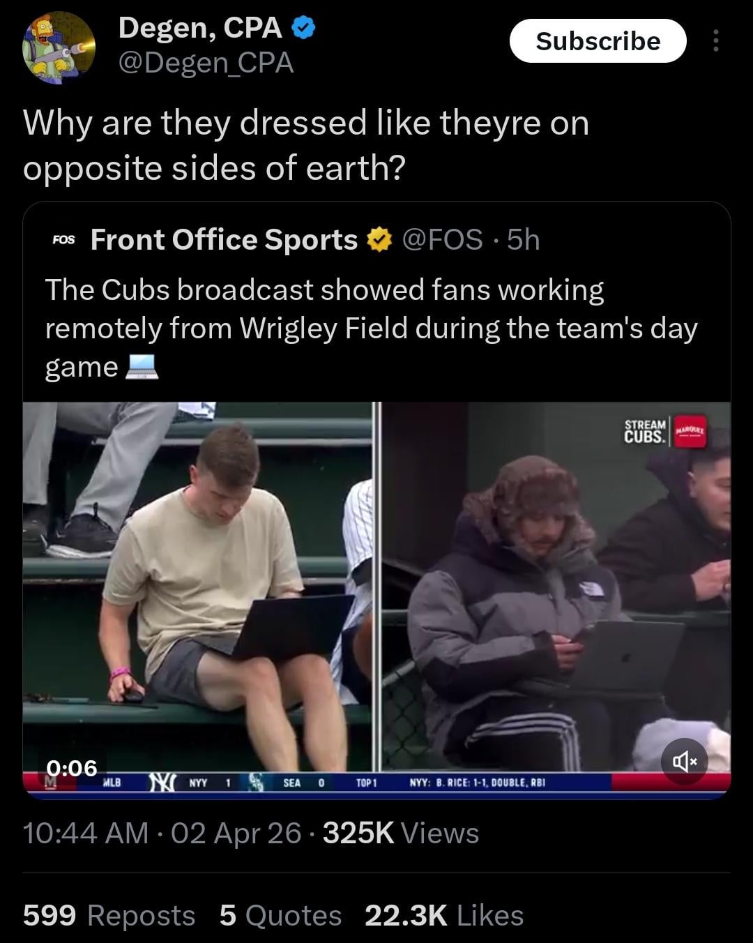 Maybe the weather is VERY different on both sides of the stadium?