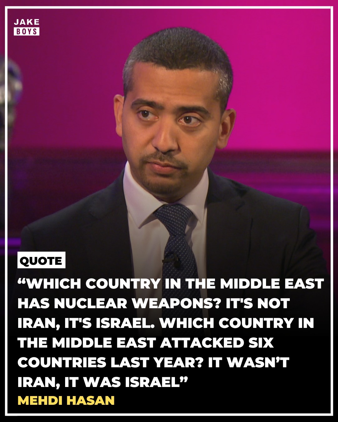 Political commentator Mehdi Hasan has claimed that Israel, rather than Iran, should be viewed as the “rogue nuclear state” in the Middle East.