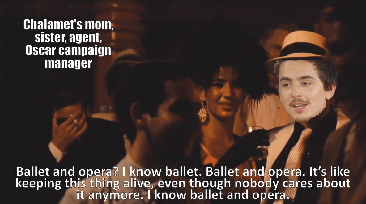 • Timothée Chalamet having a Fredo moment about ballet and opera