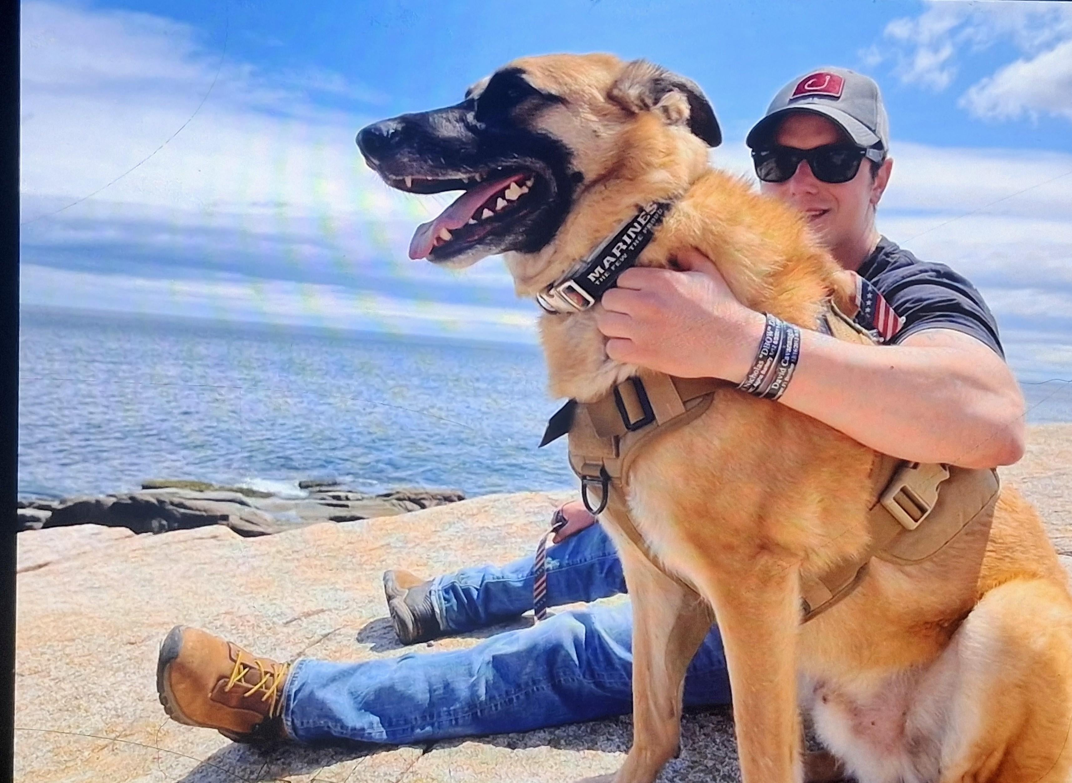 • My Belgian Malinois and me on a hike in Maine