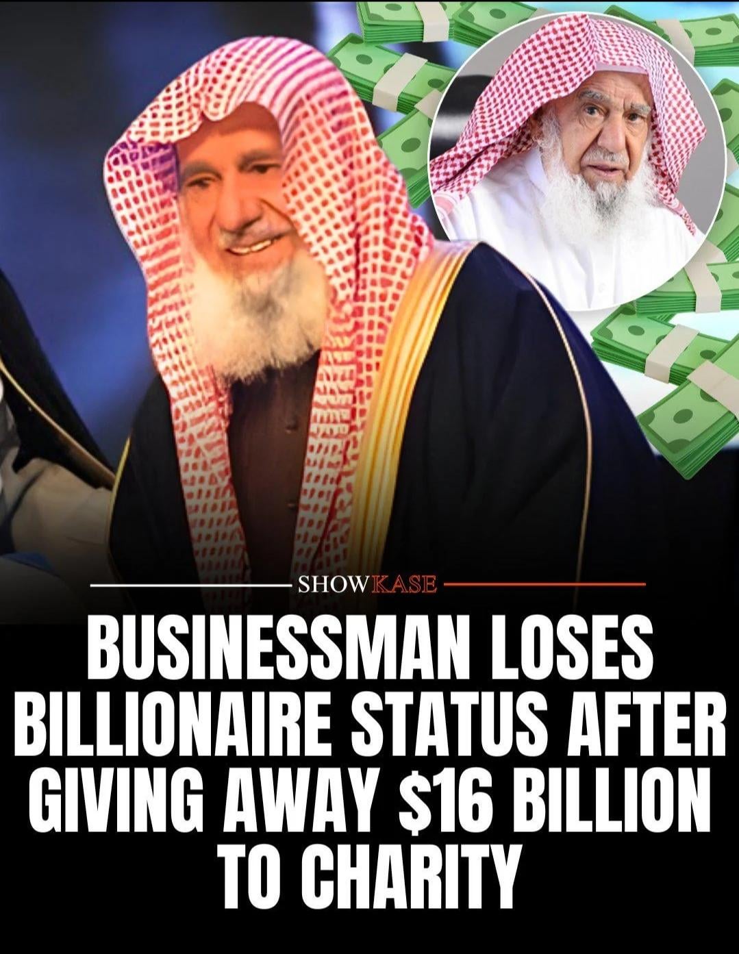 Al Rajhi announced that he had donated nearly his entire fortune, estimated at around 16 billion to charity, making him one of the world's most generous philanthropists.
