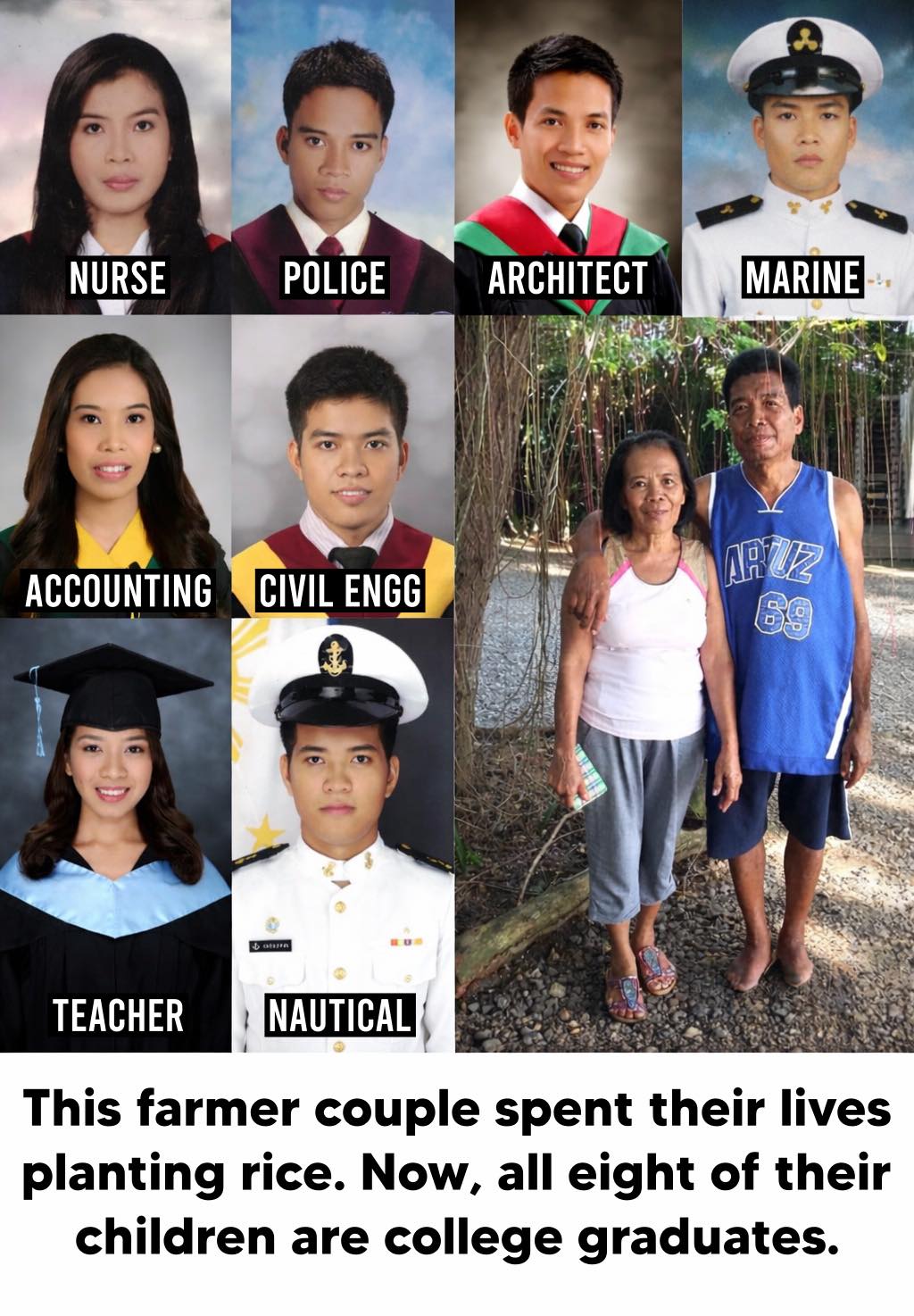 Some parents don’t leave wealth behind—just quiet sacrifices that bloom into moments like this. Years in the fields, under the sun, so their children could stand where they never could. Eight children. Eight graduates. One love that chose hard work every single day.