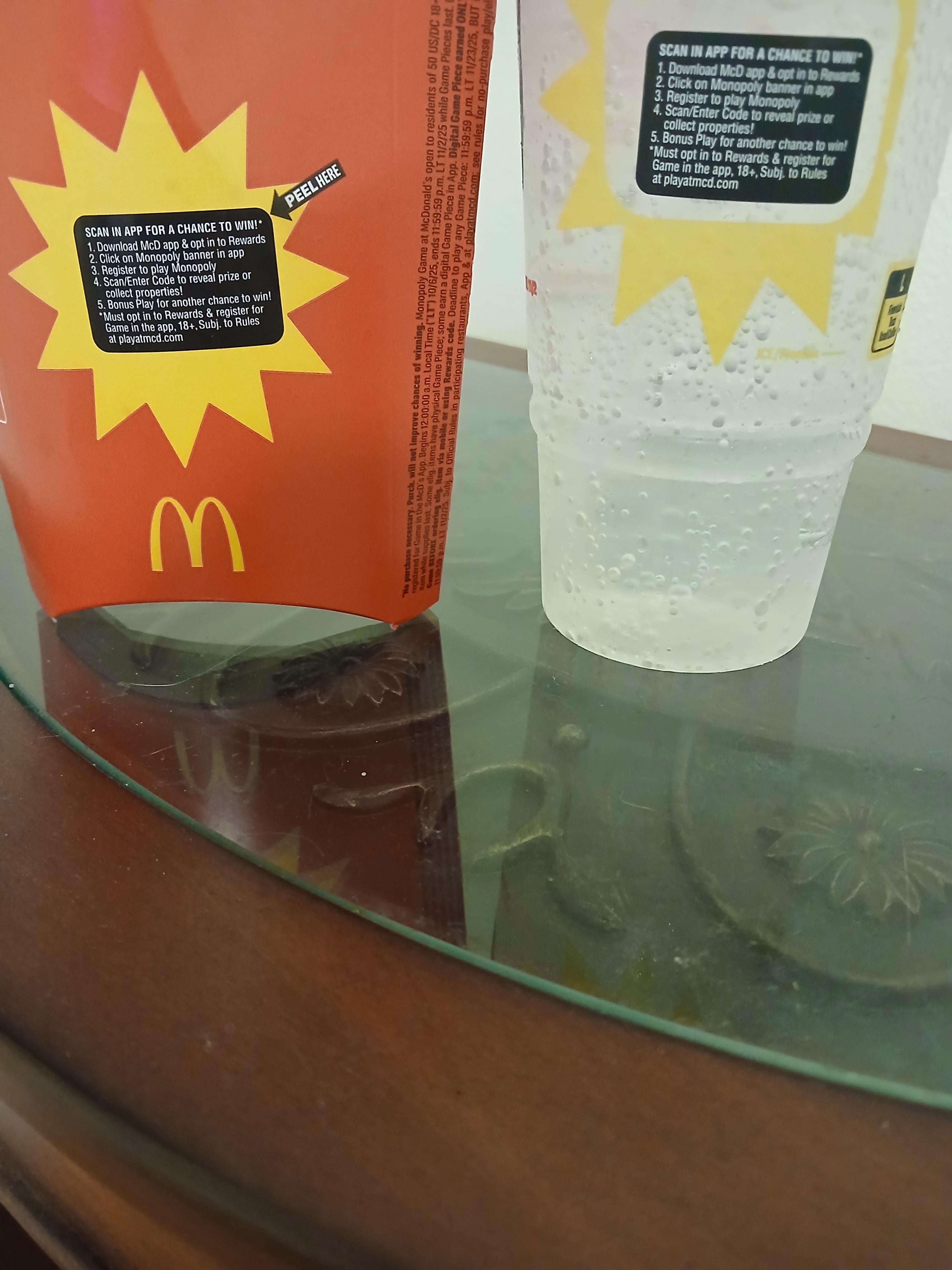 • Food delivery guy peeled off the monopoly pieces before dropping off my dinner