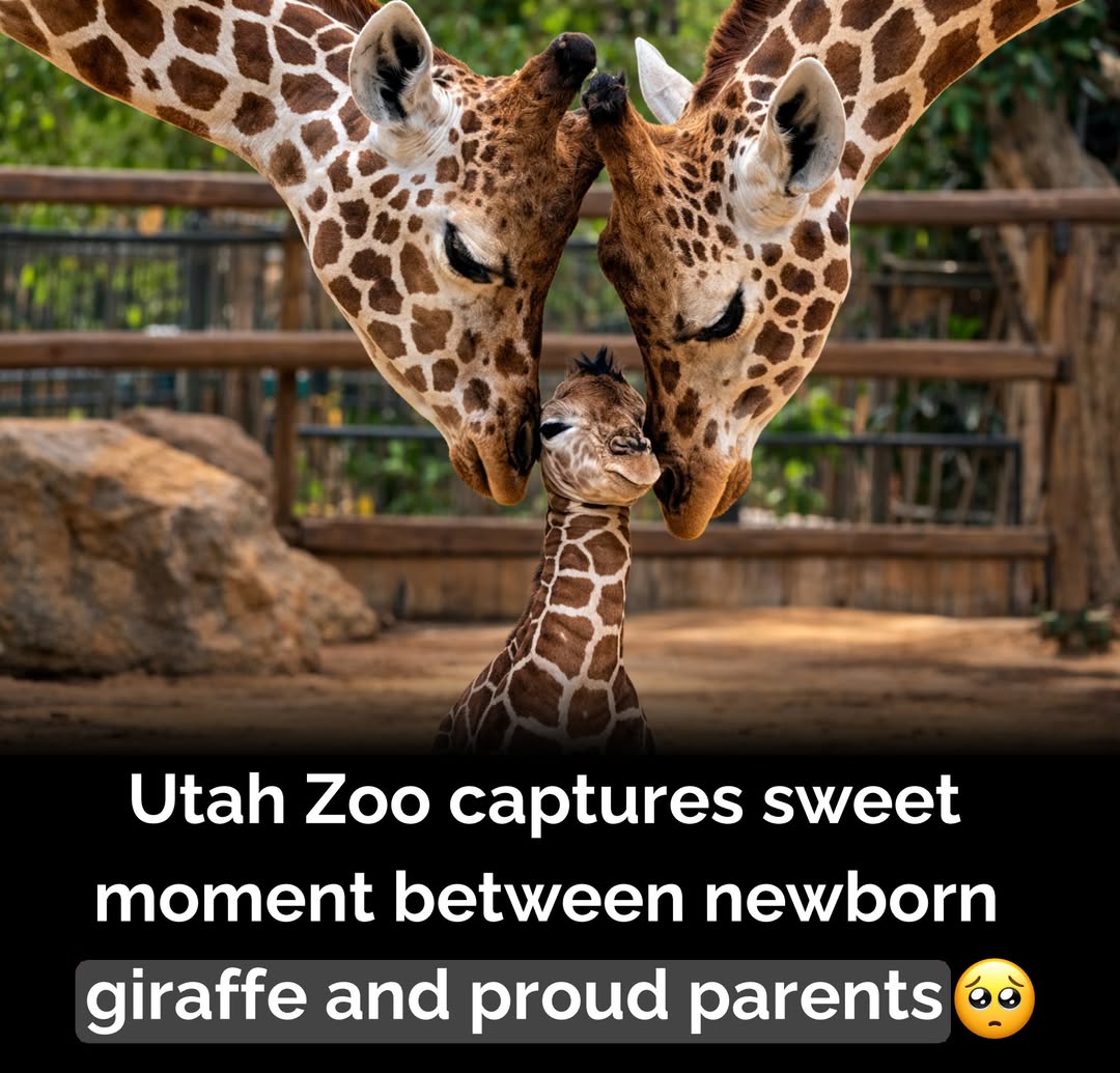 A special moment at the zoo Utah’s Hogle Zoo in Salt Lake City welcomed a healthy male giraffe calf on January 26, 2025. The newborn weighed about 139 pounds and stood 5 feet 8 inches tall at birth. His mother, Minka, a first-time mom, delivered him naturally inside the zoo’s African Savanna barn while the animal care team carefully monitored the birth. Giraffe calves enter the world in a dramatic way, dropping nearly six feet from their standing mother during birth. To keep the calf safe, the zoo team prepared a cushioned landing area to soften the fall. Soon after landing, the little giraffe found his footing and began walking within minutes, a strong sign of good health. The father, a bull giraffe named Ja, was later introduced to the newborn. In a touching moment captured on camera, both parents leaned toward their calf, creating a heartwarming scene that quickly went viral online.