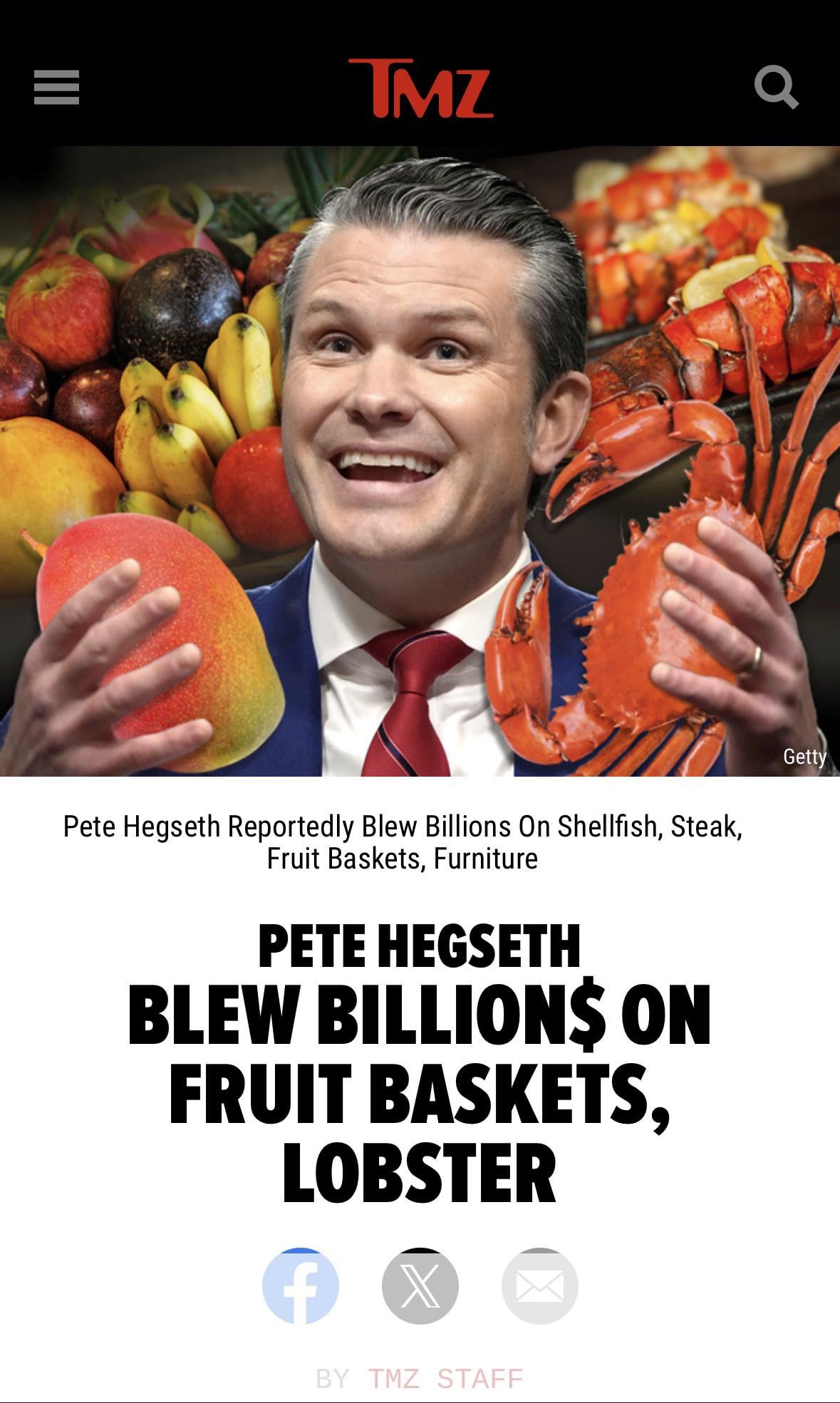 A new Pentagon budget report revealed that Pete Hegseth's Department of Defense burned through $93 billion in September 2025 alone — the biggest single-month spend since 2008. A report by watchdog group Open the Books found the department rushed to spend huge amounts of its budget before the fiscal year ended — a common “use-it-or-lose-it” practice where agencies risk losing unused funds. But critics say many of the purchases went far beyond normal military needs. Among the expenses highlighted were: • $225 million on furniture, including $12,000 fruit basket stands and over $60,000 worth of Herman Miller recliners • $98,329 Steinway grand piano for the Air Force chief of staff’s home • $15.1 million on ribeye steaks in a single month • $6.9 million on lobster tail and $2 million on Alaskan king crab • $5.3 million on Apple devices like iPads • $124,000 on ice cream machines • $139,224 on doughnuts In the final five days of September alone, the Pentagon spent $50.1 billion on grants and contracts — more than the entire annual military budgets of countries like Canada and Mexico combined. The spending spree has sparked criticism as it comes amid a $1.8 trillion U.S. deficit and after millions of Americans lost food assistance during a government shutdown.