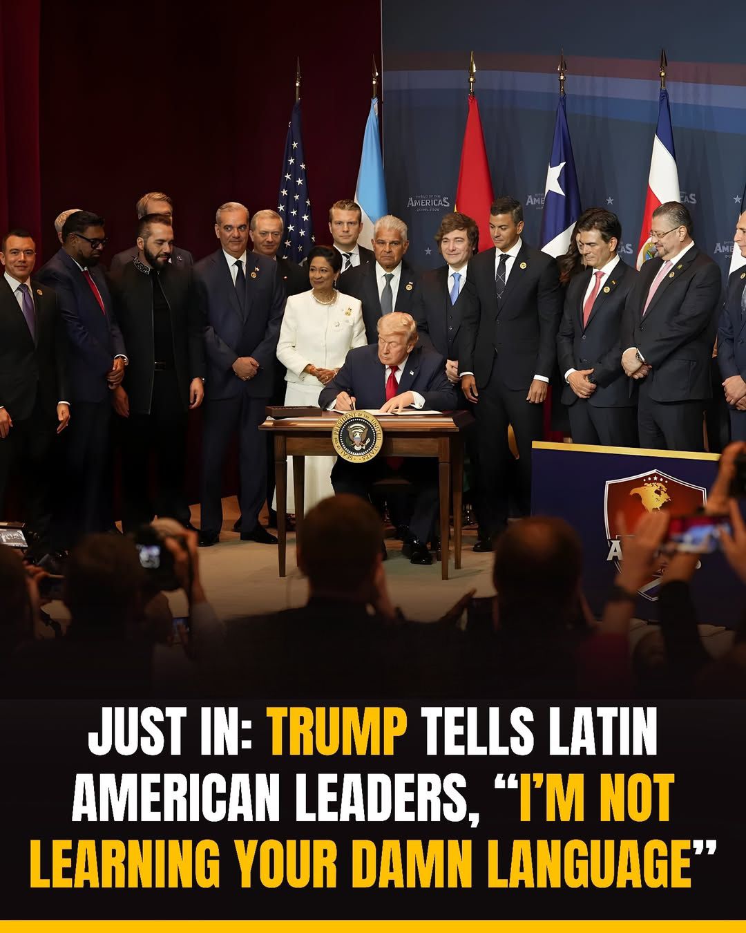 President Trump delivered a characteristically direct message to Latin American leaders during high-stakes talks, declaring, “I’m not learning your damn language.” The bold statement came amid discussions on TRADE, BORDER security, and REGIONAL alliances, underscoring his UNFILTERED approach to diplomacy. Critics call it disrespectful; supporters hail it as REFRESHING honesty from the Commander-in-Chief. As TENSIONS rise in the Americas, will this spark new friction or force REAL talks? Stay TUNED for updates on this developing story. #BreakingPoint360 #USNews #WorldNews #Trump #LatinAmerica #TrumpDiplomacy