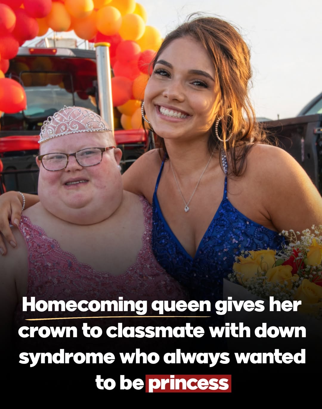 At S&S High School in Sadler, senior Trinity Arrington was announced as the homecoming queen. But instead of celebrating alone, she did something no one expected. She walked straight to her friend Emily Petty — and gently placed the crown on her head. Emily, who has Down syndrome, had always dreamed of being a princess. Their friendship grew after Trinity started spending her lunch breaks in the special education classroom. As the crowd watched, the two girls walked across the field hand in hand, smiling and waving while classmates cheered. In that moment, the crown stopped being about popularity — and became about kindness. But here’s the honest question: Was this pure kindness… or would some people say it was foolish to give away something you just won?