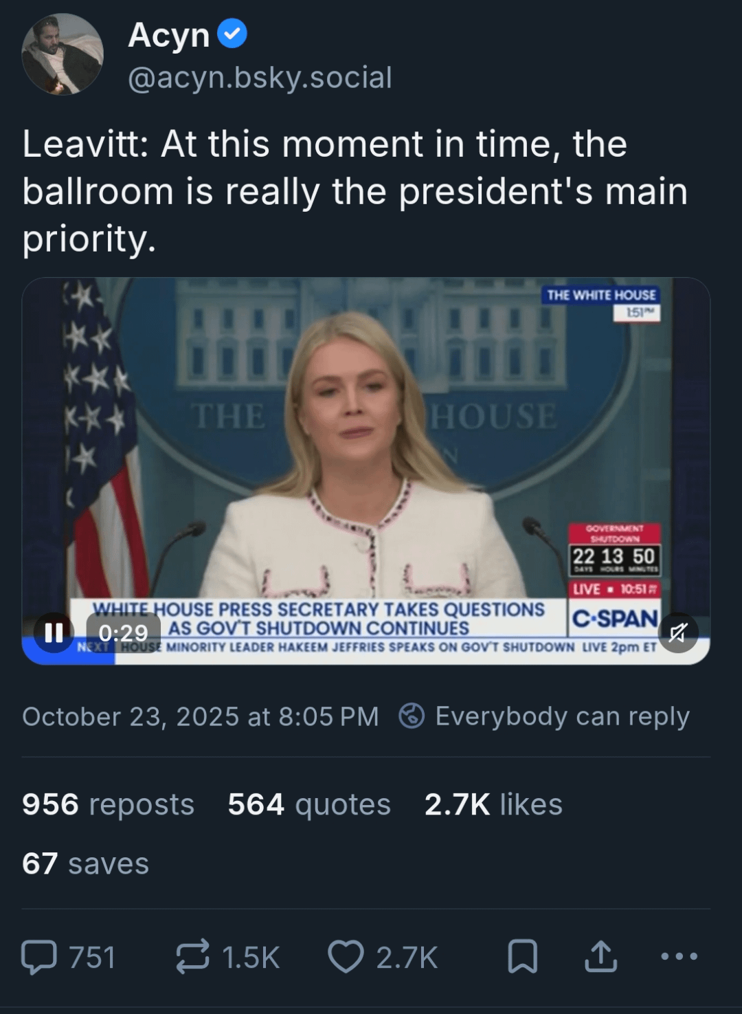 Leavitt: At this moment in time, the ballroom is really the president's main priority.