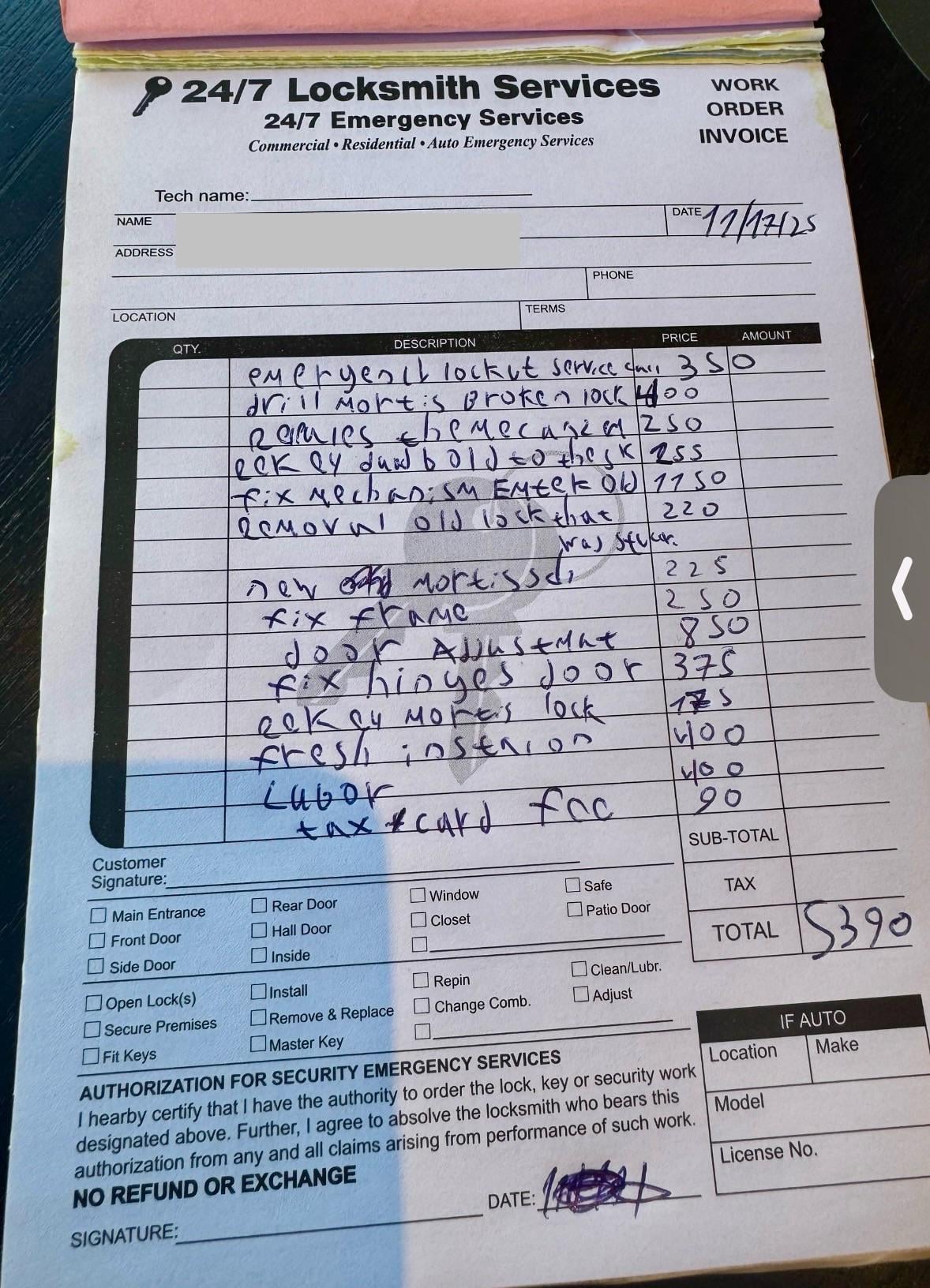 AIO A locksmith charged my partner’s sister $5390 to get back into her apartment