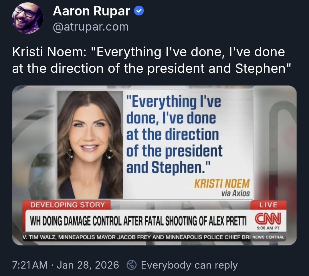 Kristi Noem: "Everything I've done, I've done at the direction of the President and Stephen" - via Axios