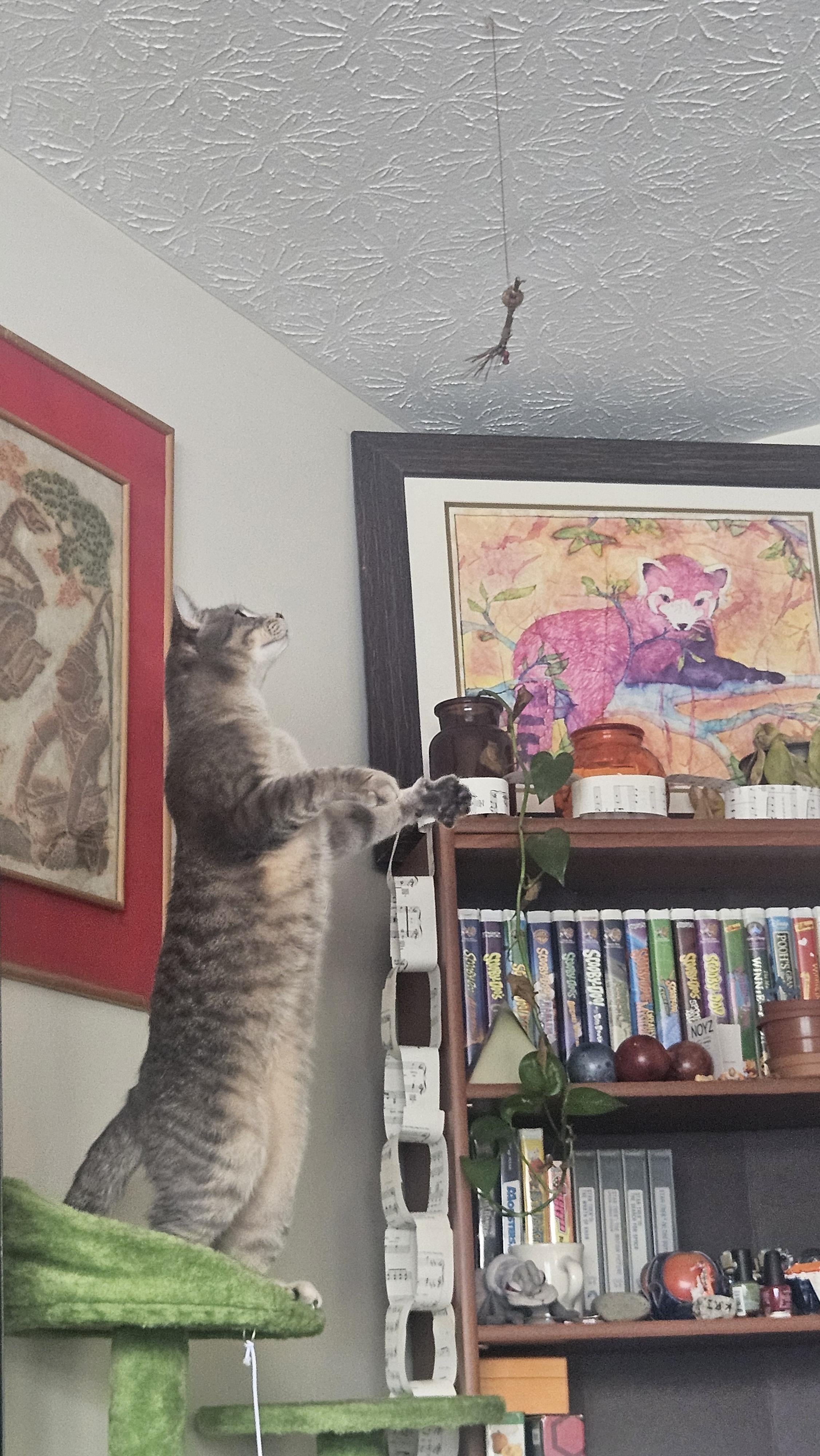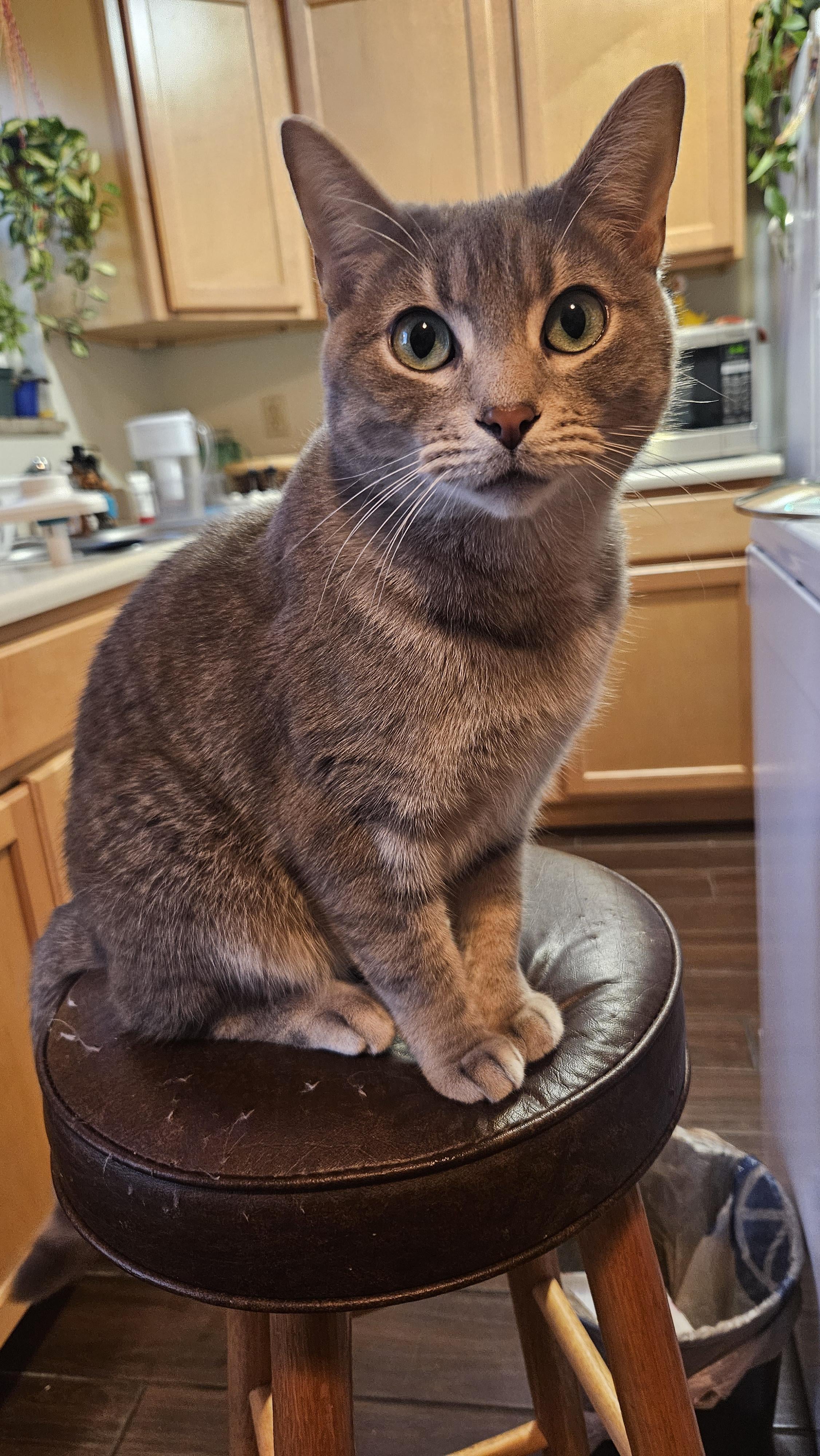 Just a little cat on a little stool.
